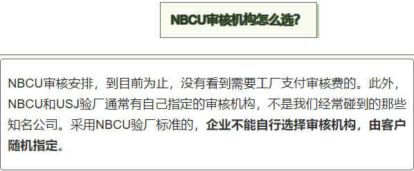 NBCU验厂,全称为NBC Universal环球影视公司,主要为人权、环境、健康安全方面的验厂,并且由指定的审核机构进行审计。验厂是通过定期的审核和评估来确保工厂遵守相关法律和法规、劳工权益、环境保护和质量管理等要求